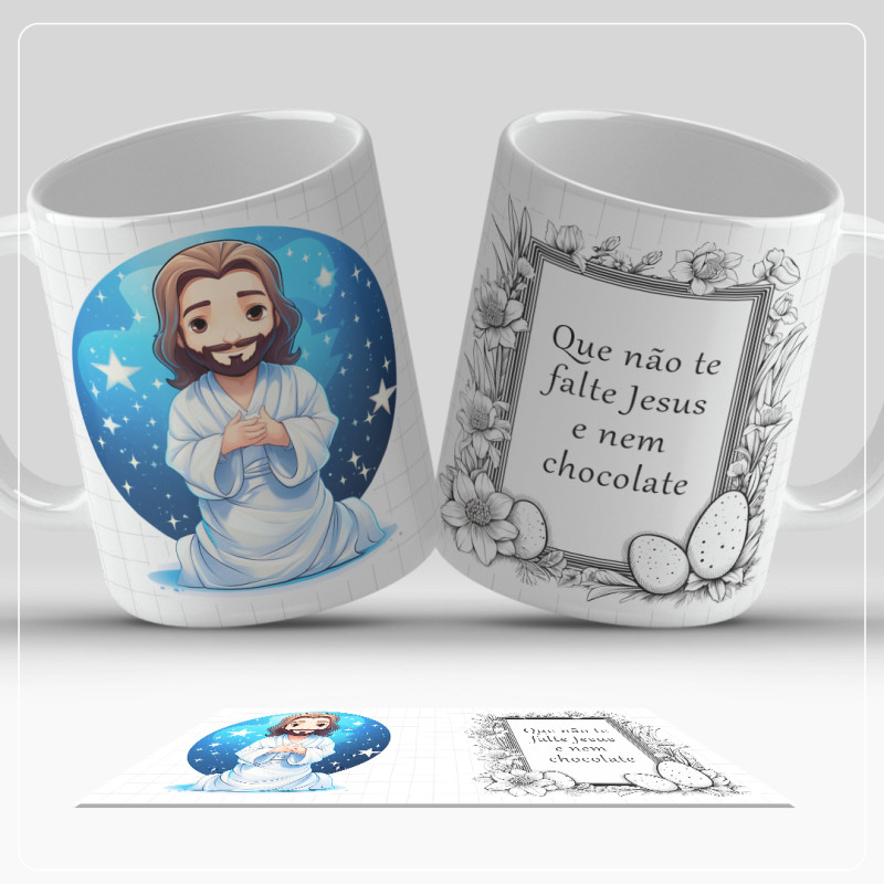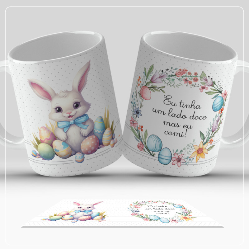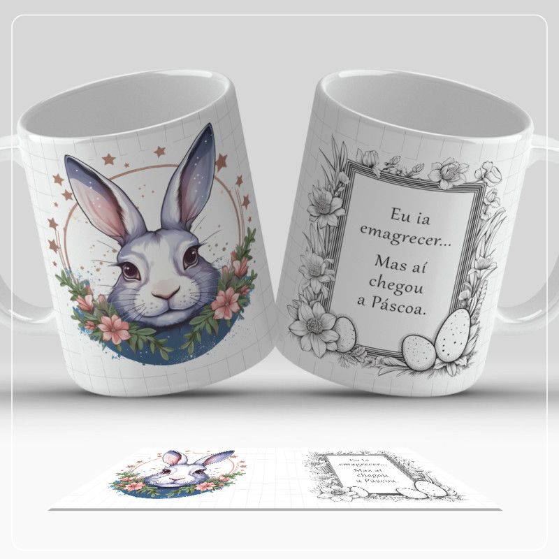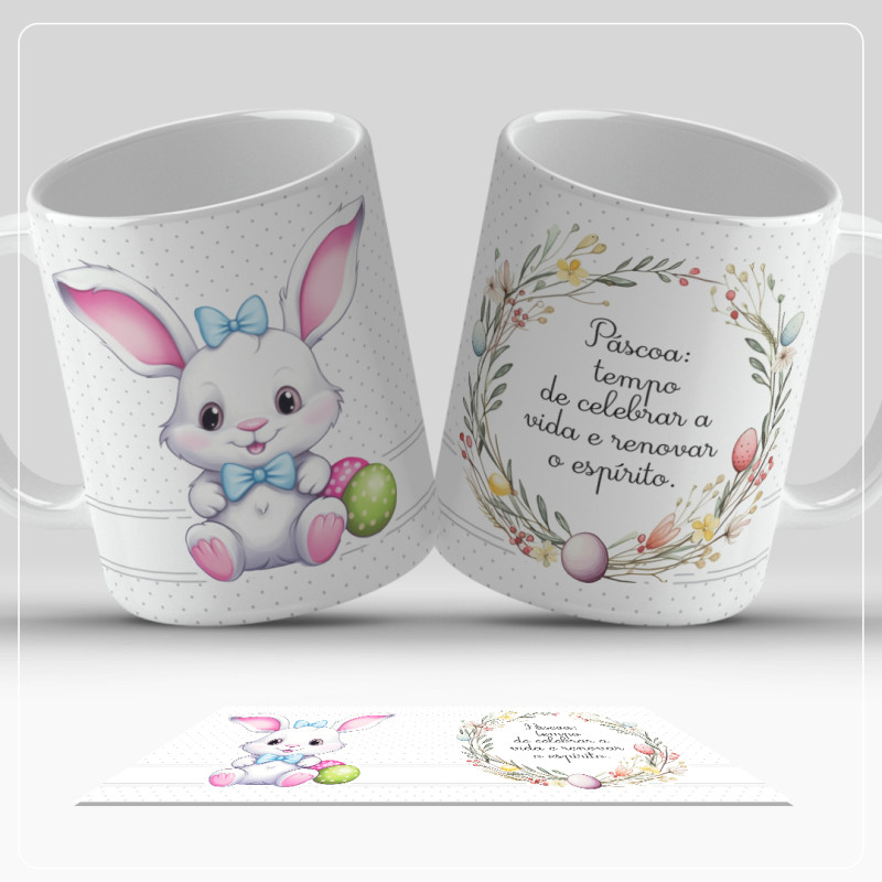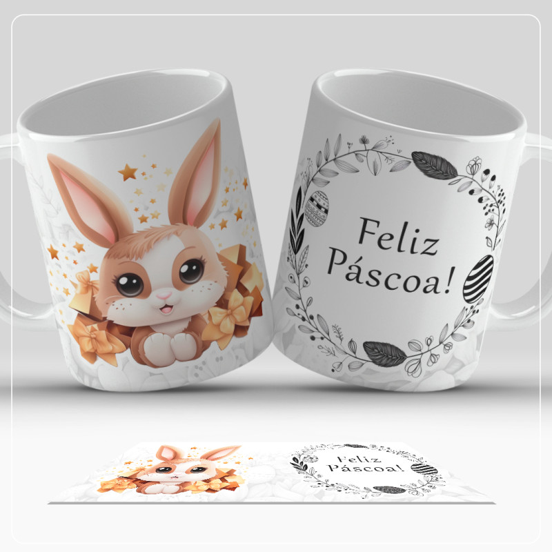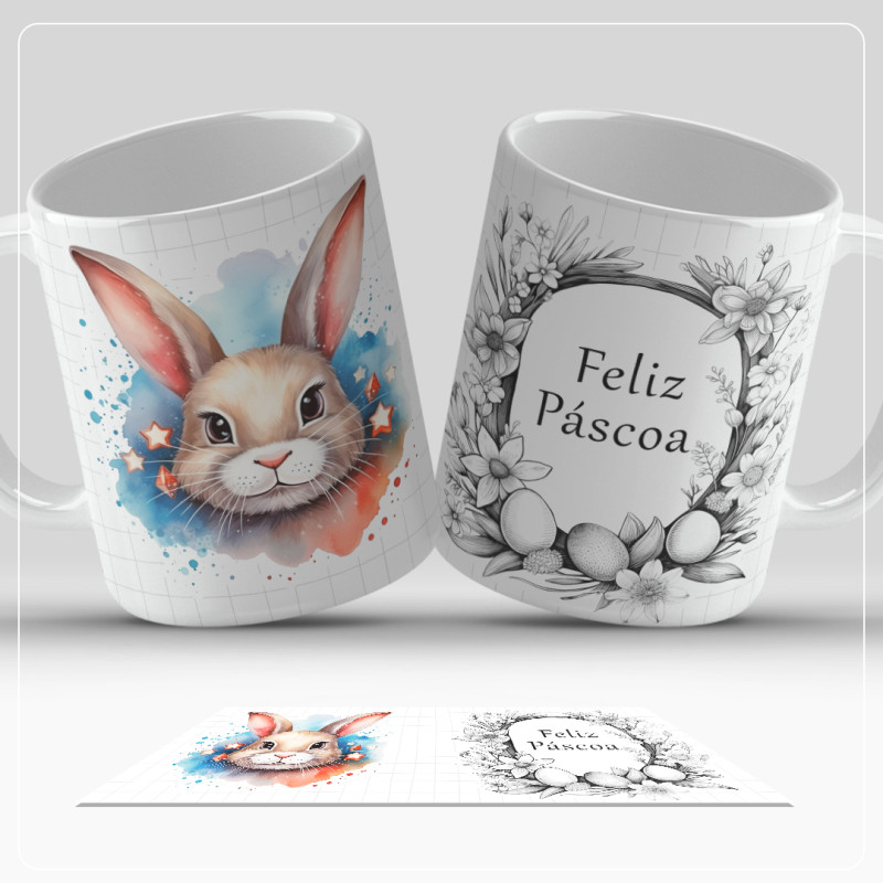 Caneca minimalista com vários designs para oferecer na Páscoa.