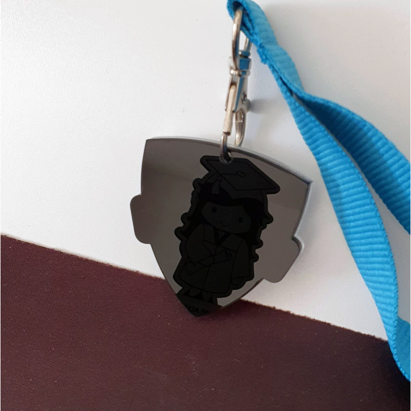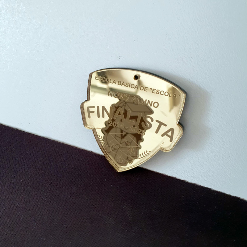 Incluído: Medalha em acrílico, fita para colocar ao pescoço embalagem.